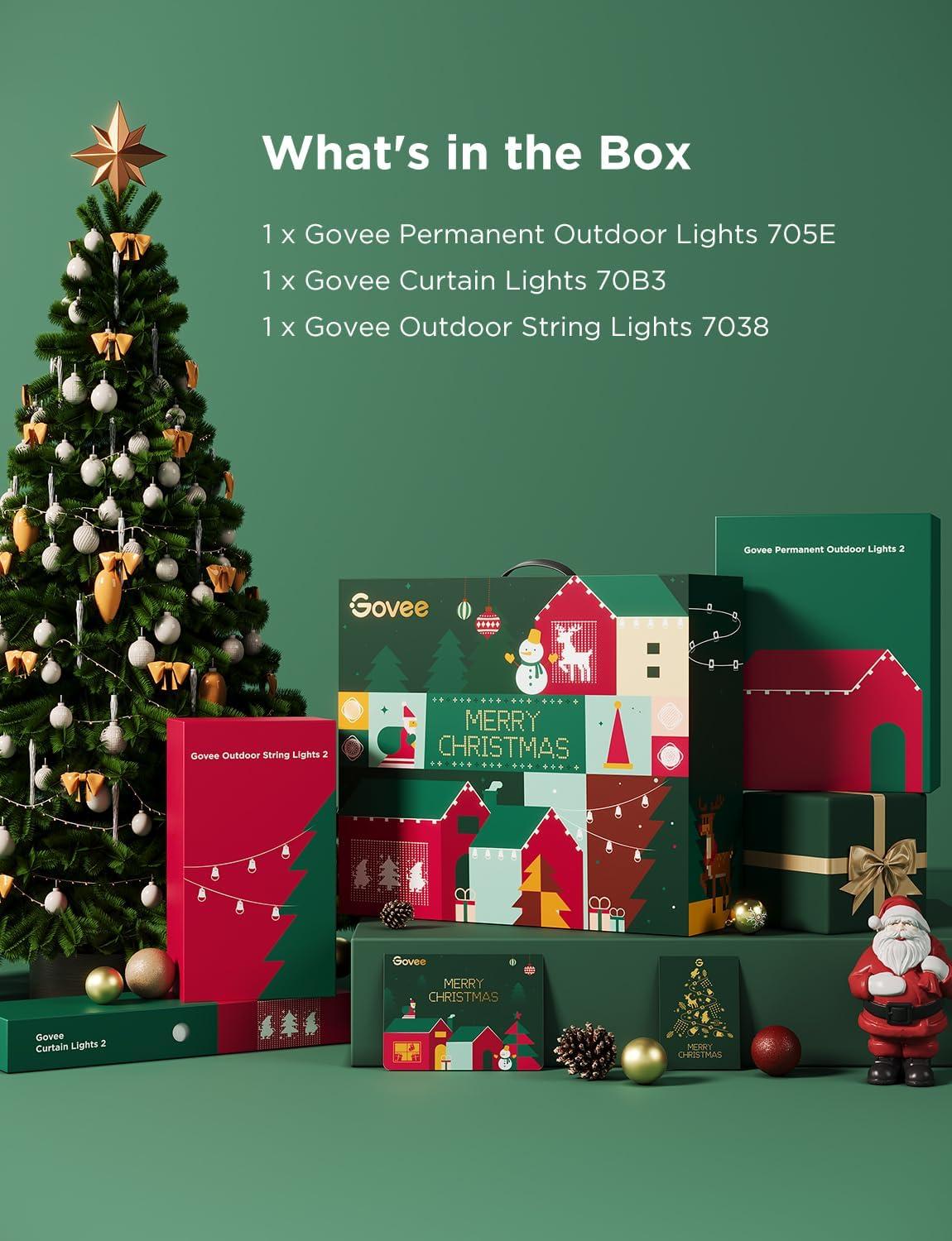 Govee Christmas Lights Set, 100ft Permanent Outdoor Lights, 96ft String Lights,4.9×6.6ft Curtain Light for Halloween and Christmas Decorations, Works with Alexa, Google Assistant, IP65 Waterproof