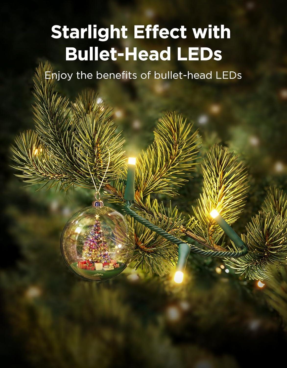 Starlight Effect with Bullet-Head LEDs: Govee 66ft Christmas Sparkle String Lights feature 250 milky white bullet-head LEDs that provide a starlight lighting effect. It shines like stars on a Christmas tree, creating a naturally vibrant holiday glow