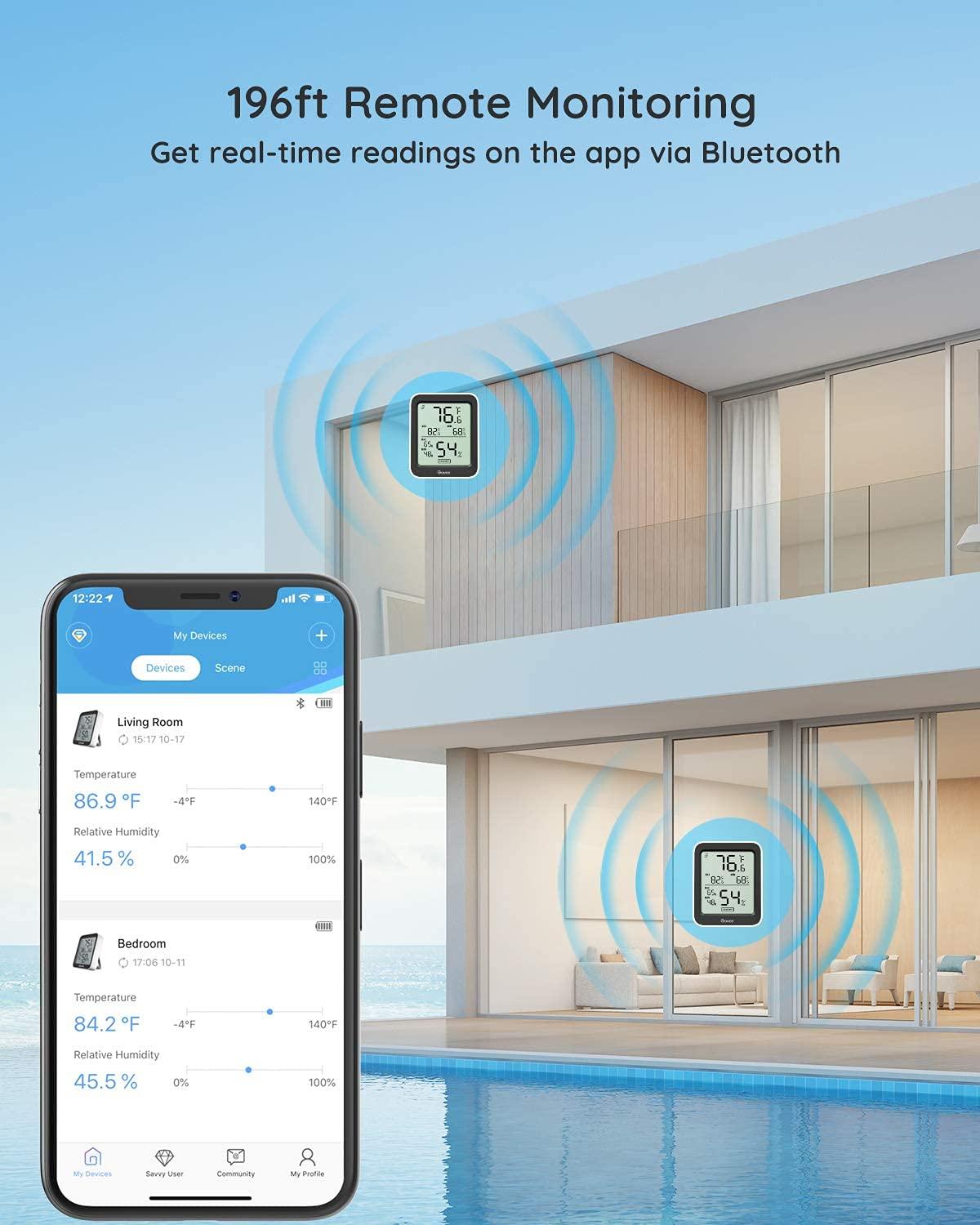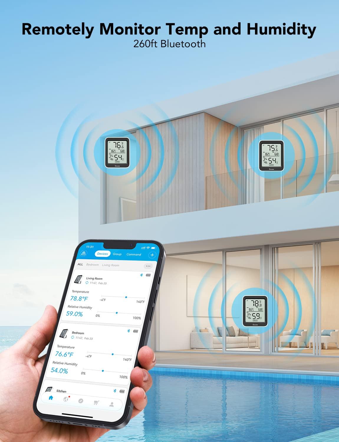 Smart Features: The Govee Wireless Thermometer Hygrometer supports all basic functions as well as smart functions such as remote monitoring and temp humidity graphs. Our humidity meters are reliable and easy to use for homes, greenhouses and more.(Only supports 164ft Bluetooth connection)
