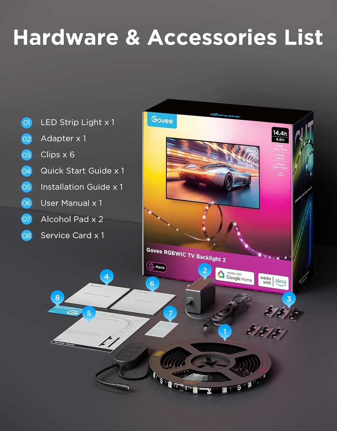 Be the first to review “Govee TV LED Backlight 2, 14.4ft Cuttable TV Lights for 32-70 Inch TVs, Color Changing RGBWIC LED Strips Lights with 210+ Scene Modes & Music Sync, Smart APP and Voice Control, Easy Install(14.4ft)”
